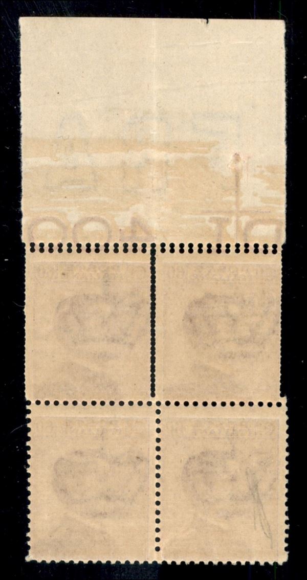 1917/20 - Michetti quartina 60 cent con doppia dentellatura sulla fila superiore(111l) - gomma integra