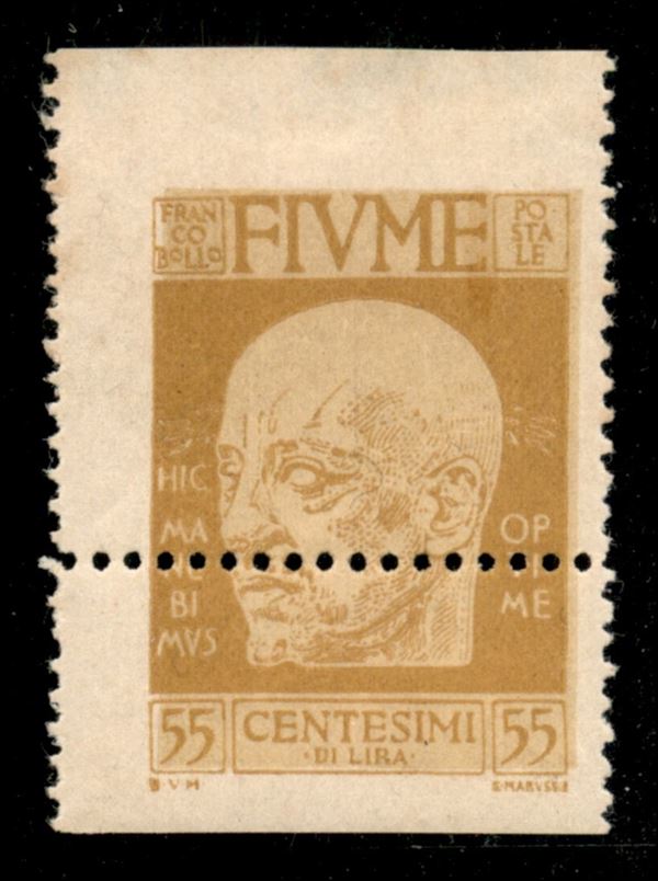 1920 - 55 cent D’Annunzio (121 varietà) - unica dentellatura orizzontale spostata in basso - gomma integra - assottigliamento sul bordo in alto lontano dal disegno - non catalogato