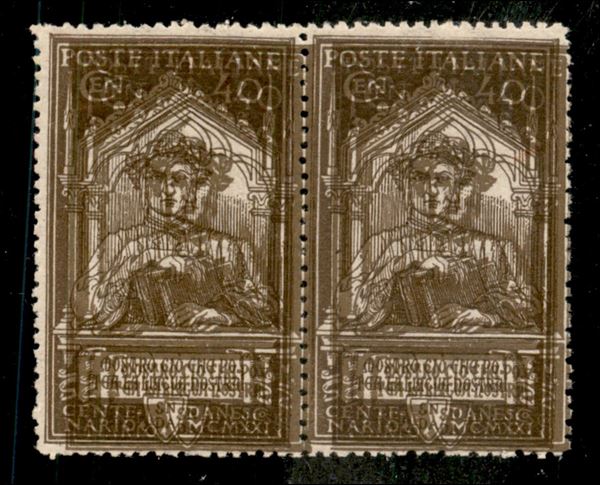 1921 - Dante Alighieri coppia 40 cent varietà doppia stampa (118c) gomma integra