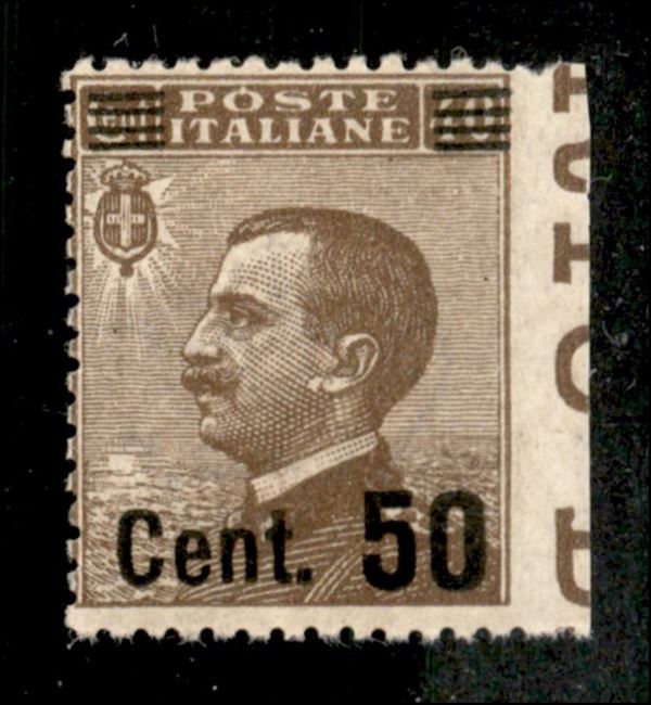 1923/27 - Michetti 50 cent su 40non dentellato a destra con bordo foglio (139w) - gomma originale