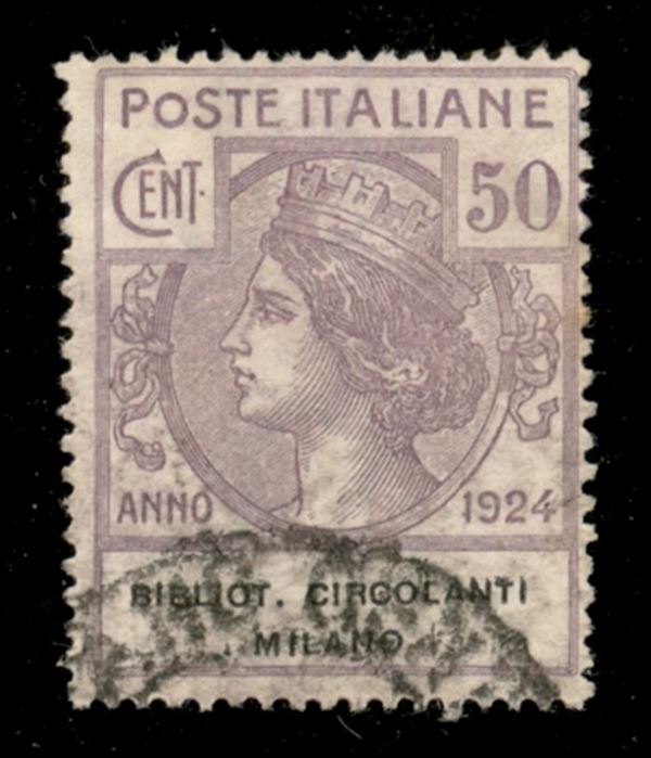 1924 - 50 cent (16) Bibliot. Circolanti Milano - usato - raro