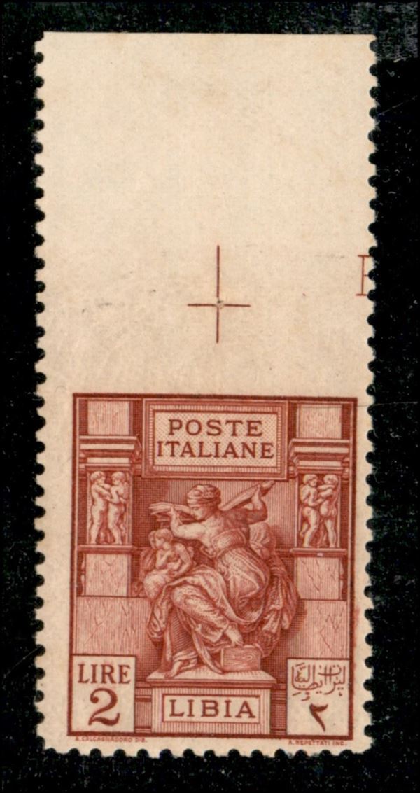 1929 - 2 lire Sibilla (57c) non dentellato in alto (bordo foglio) - gomma integra