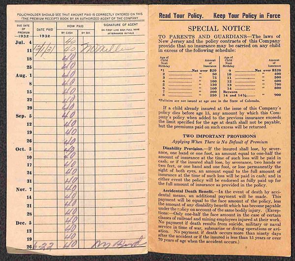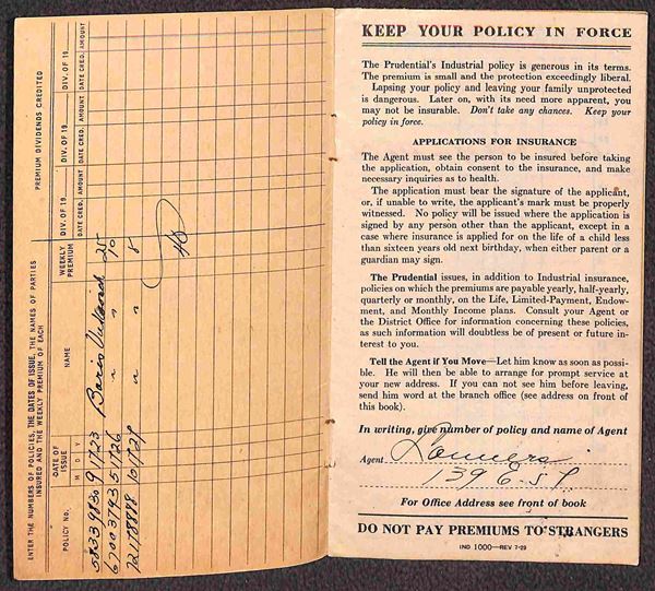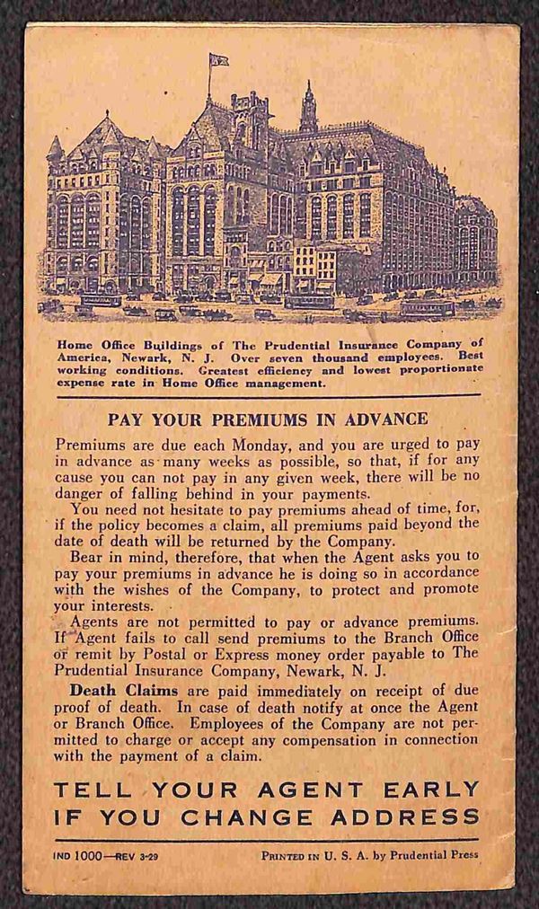 1929/1932 - Libretto Assicurativo "The Prudential Insurance Company" del periodo