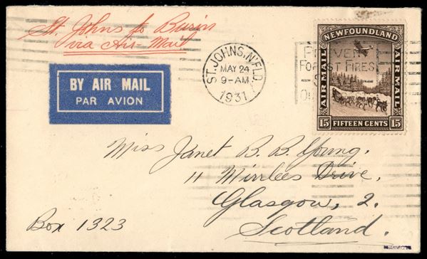 1931 (24 maggio) - St. Johns Burin - Muller 21 - aerogramma per Glasgow