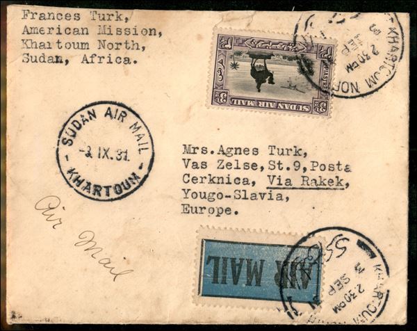 1931 (3 settembre) - aerogramma da Khartoum per la Jugoslavia