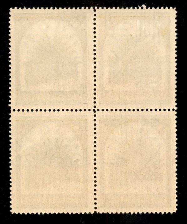 1934 - 50 cent Ala (30 + 30caa) in quartina - unica doppia filigrana lettere nella coppia di sinistra + corona diritta nelle coppie di destra - gomma integra