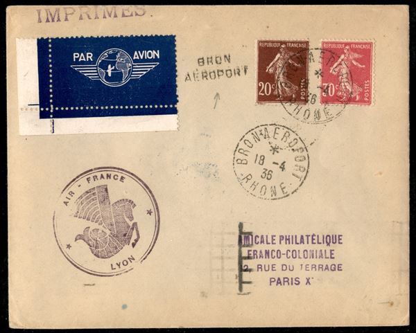 1936 (18 aprile) - Bron Aeroport - aerogramma per Parigi