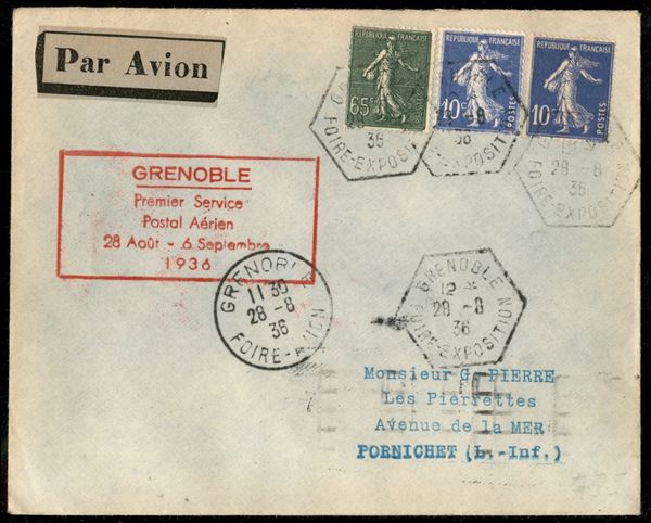 1936 (28 agosto) - Grenoble Pornichet - aerogramma del volo