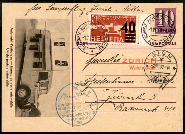1937 (1 agosto) - Zurigo Slitten - Muller 404 - cartolina postale del volo