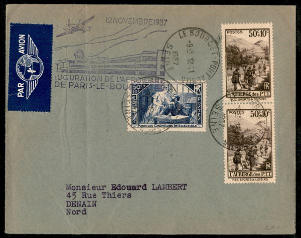 1937 (12 novembre) - Aeroporto Le Bourget - Muller 322 - aerogramma da Parigi a Denain
