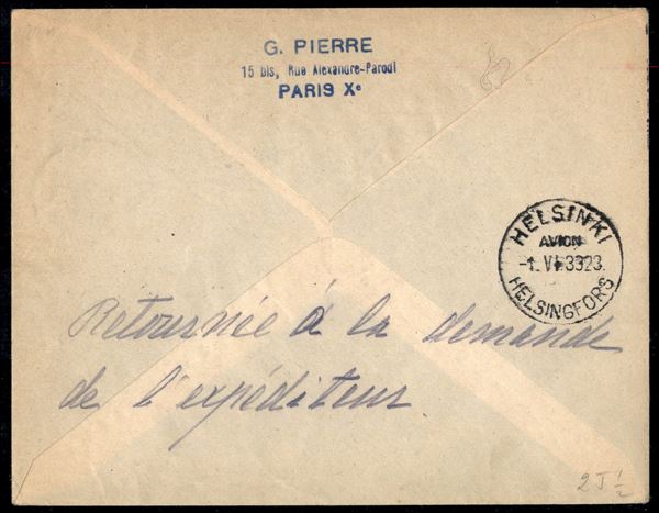 1939 (1 giugno) - Francia Finlandia - Muller 456 - aerogramma del volo