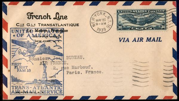 1939 (20 maggio) - New York Marsiglia (Parigi) - Primo Volo F.a.m. 18