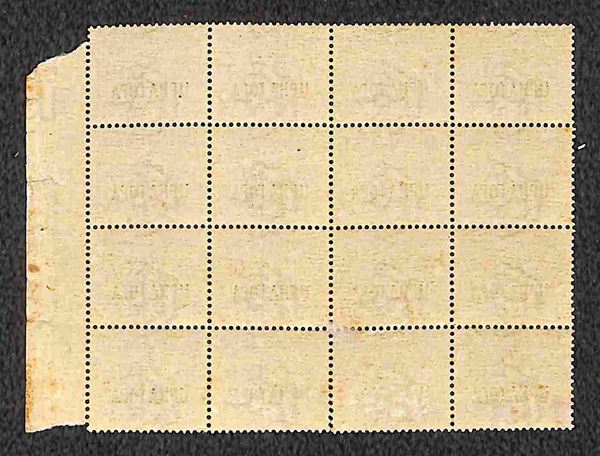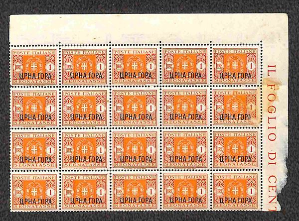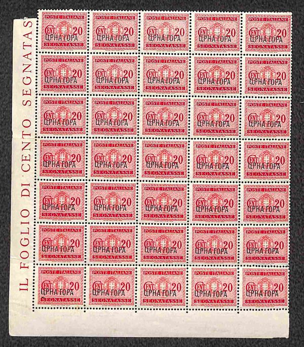 1941 - 10 cent Segnatasse (6) blocco di 16 bordo foglio + 20 cent Segnatasse (7) blocco di 35 angolo di foglio + 1 lira Segnatasse (10) blocco di 20 angolo di foglio - gomma integra - qualche difetto - da esaminare