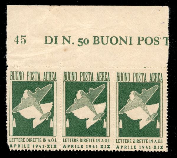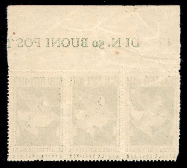 1941 - Verde giallo (1) - striscia di tre bordo foglio - senza gomma