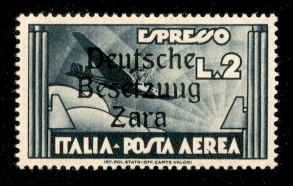 1943 - 2 lire Aeroespresso "Besetzuug" (9K - pos. 6) - gomma integra