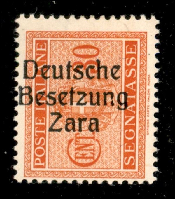 1943 - 30 cent (5e - varietà b) - n rotta (pos. 10) con soprastampa a sinistra - gomma integra - Raybaudi