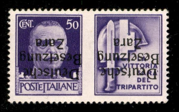 1943 - 50 cent Milizia (23b) con soprastampa capovolta - gomma integra