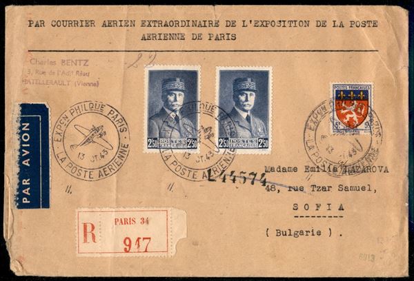1943 (13 ottobre) - Parigi Sofia - aerogramma del volo