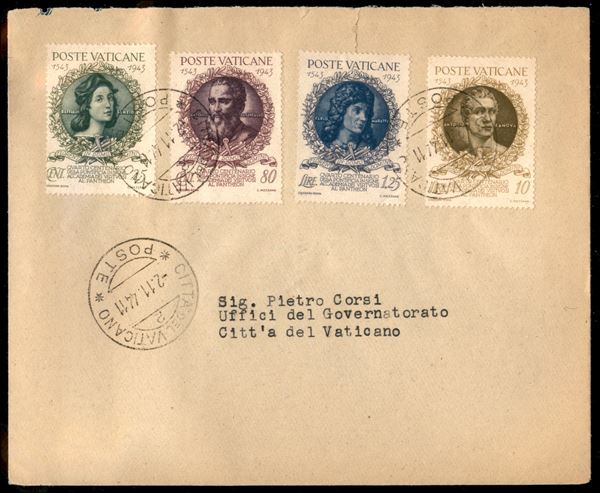 1944 (2 novembre) - Virtuosi (87/90) - serie completa su busta per cittą - usata in data precedente l'emissione