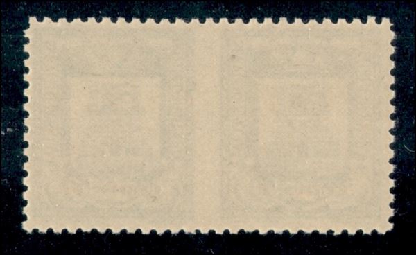 1945 - 50 cent su 1 lira (18a) - coppia non dentellata al centro - gomma integra