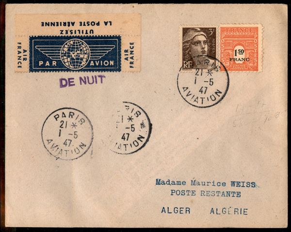 1947 (1 maggio) - Parigi Algeri - Muller 580 - aerogramma del volo