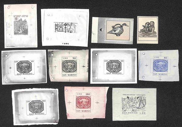 1971/1980 - Prove d'archivio - Collezione di 11 prove di stampa - senza gomma - cert Raybaudi