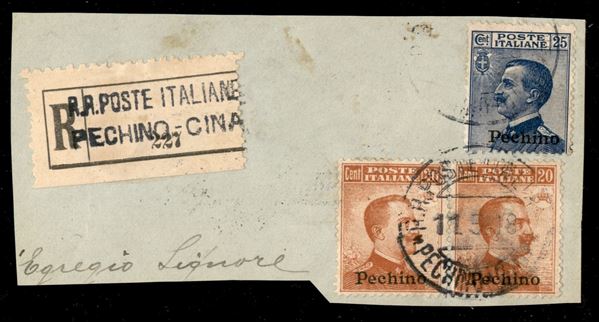 25 cent (13) + coppia del 20 cent (12) su frammento di raccomandata - Pechino 11.5.18
