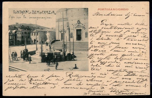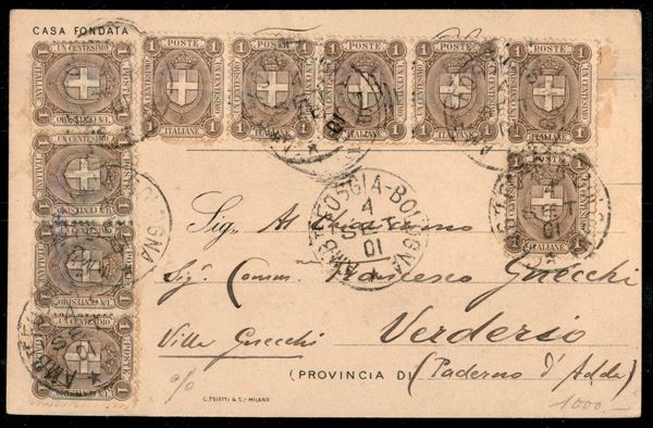 Bella cartolina da Porto San Giorgio per Verderio del 4 set. 01 affrancata con tre coppie + striscia di quattro 1 cent (65)