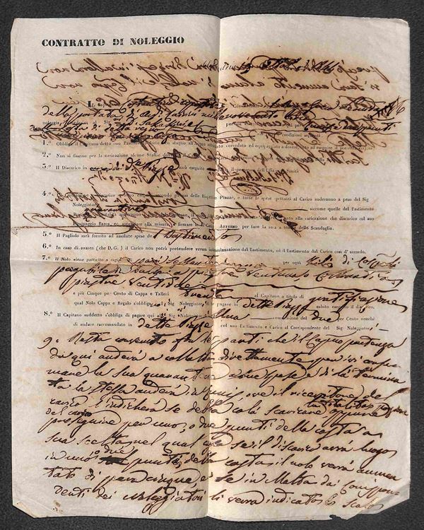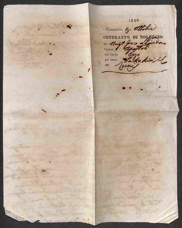 Contratto di Noleggio del Brigantino greco Leonida da Alessandria a Tunisi del 19.10.1841