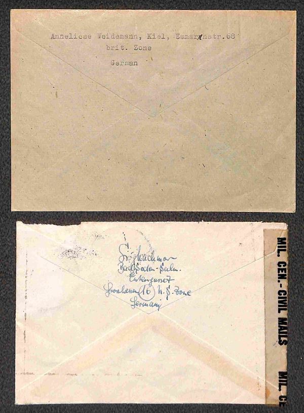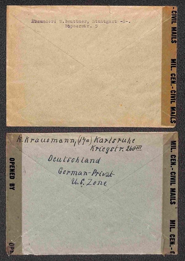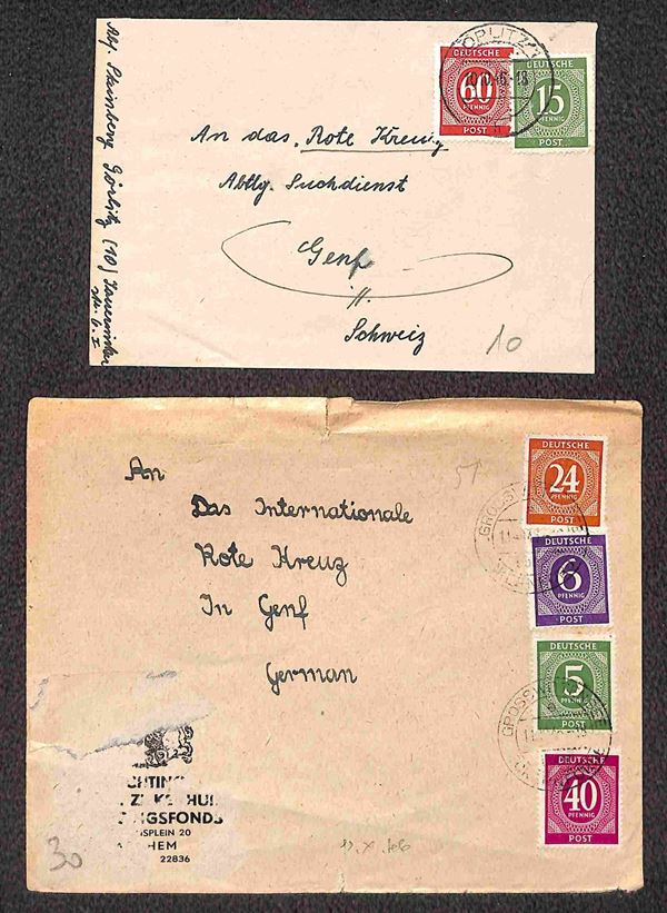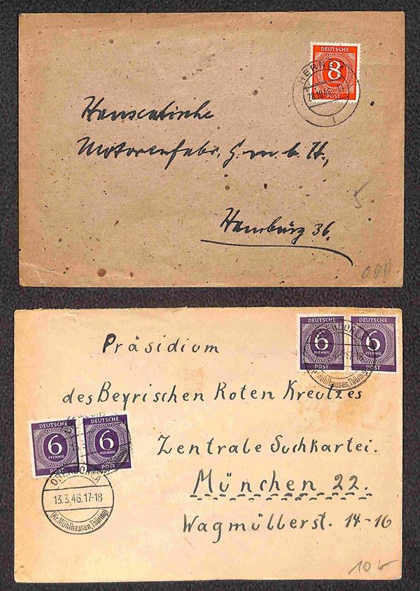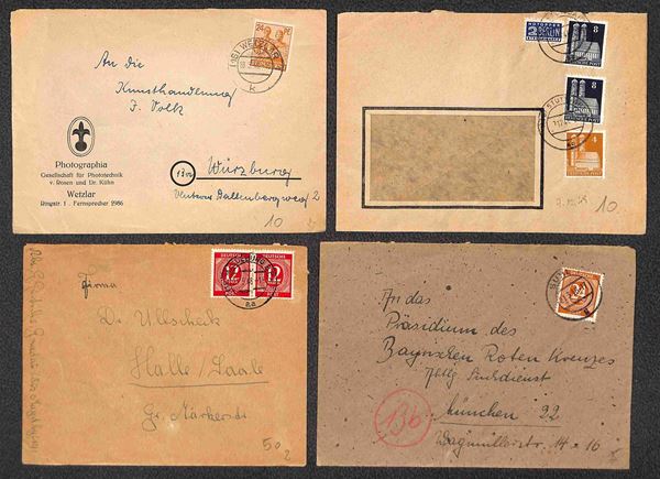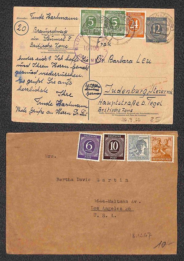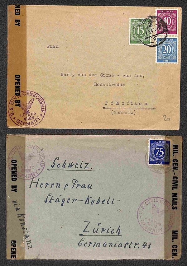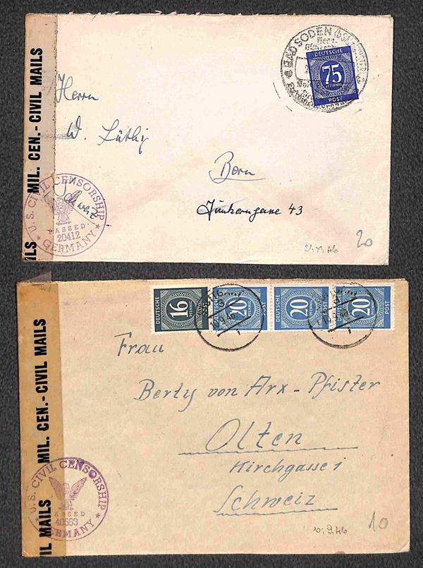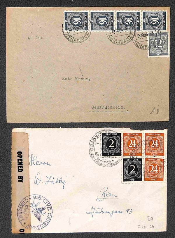 Deutsche Post - 1946/1948 - Sei buste per la Germania + sette per la Svizzera (quattro con censure) + una per gli USA + una cartolina postale per la Zona Britannica