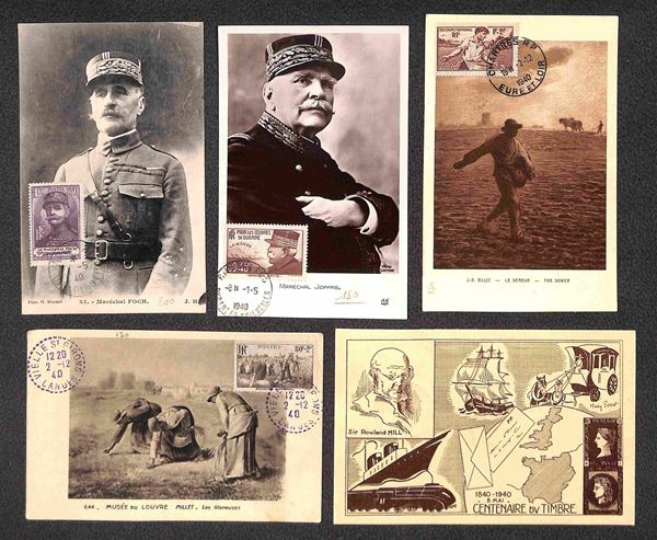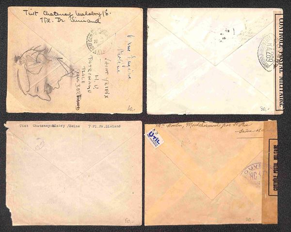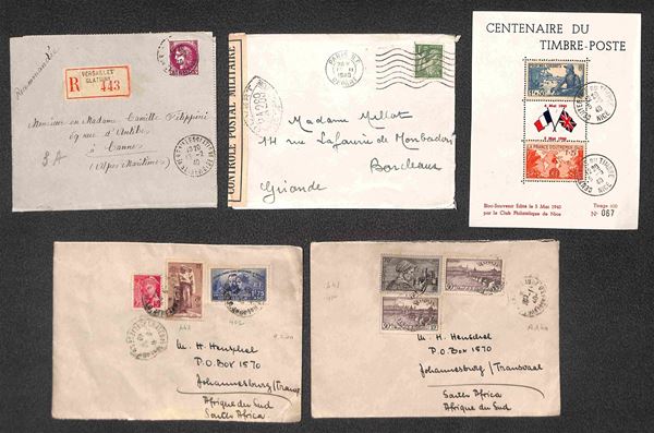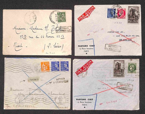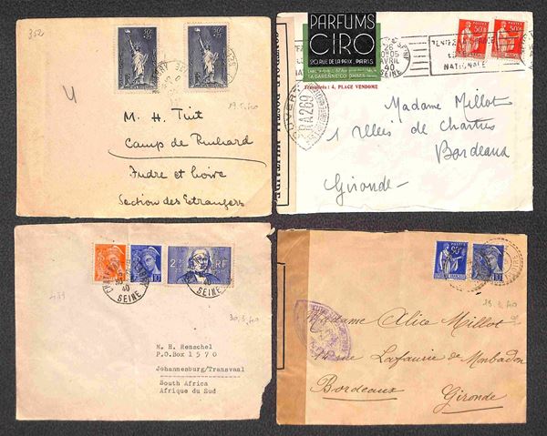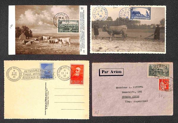 FRANCIA - 1940 - Tredici buste + nove cartoline - affrancature del periodo e annulli diversi (anche speciali)