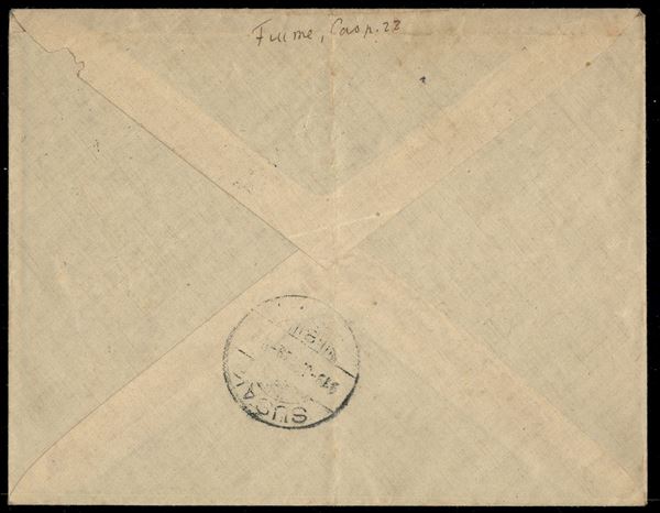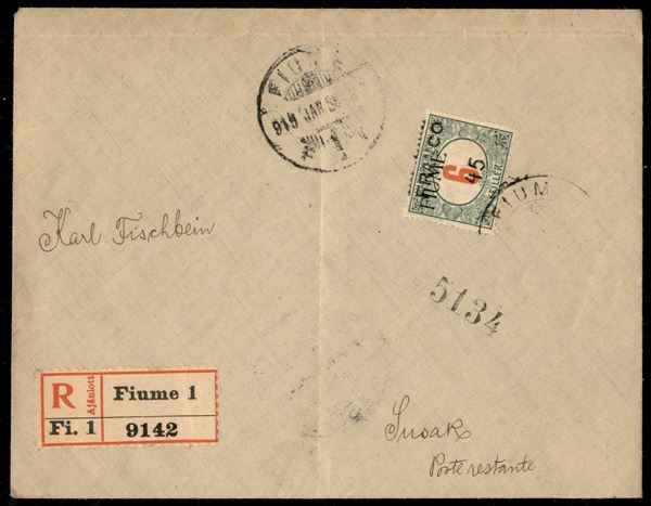 Franco 45 su 6 filler (29cbb - varietà) - sbarretta a cavallo + Fiume in alto a sinistra - raccomandata per Susak del 28.1.19