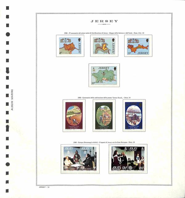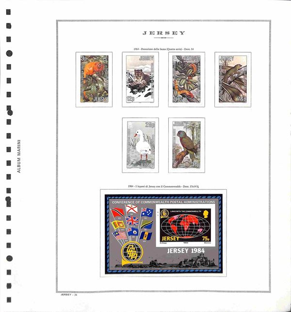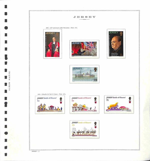 GB - JERSEY - 1969/1988 - Collezione di valori serie complete e foglietti del periodo montata su fogli Marini - presenti segnatasse - alcune mancanze nei primi anni - gomma integra