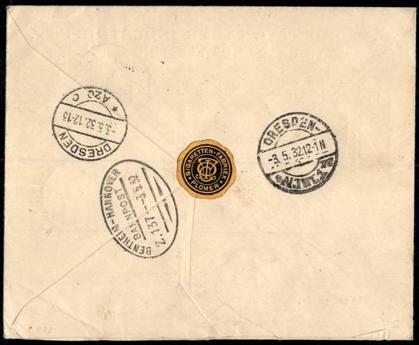 Indie Olandesi - Sigarette Plomer - aerogramma raccomandato da Batavia a Dresda del 21.4.32