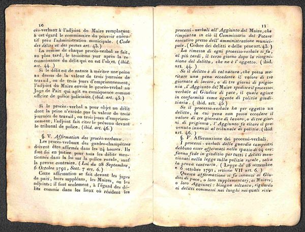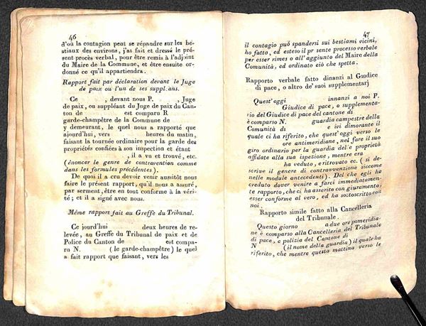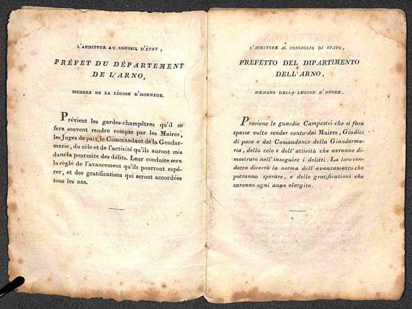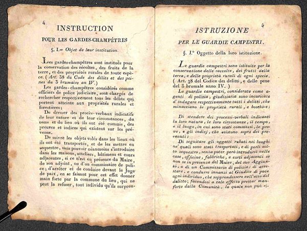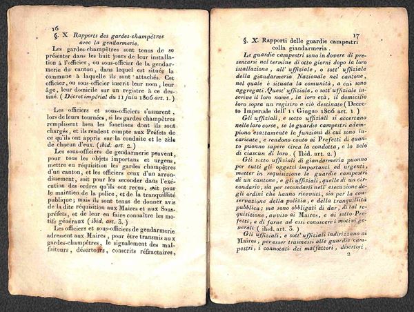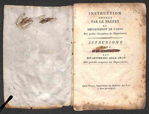 Instruction donnče par le Prefet du Departement de l'Arno (per le Guardie Campestri) - fascicolo 12x17 di 52 pagine copertinato (in cartapecora)