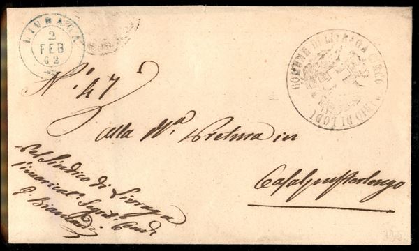 Livraga (P.ti 7) - lettera in franchigia per Castelpusterlengo del 2.2.62