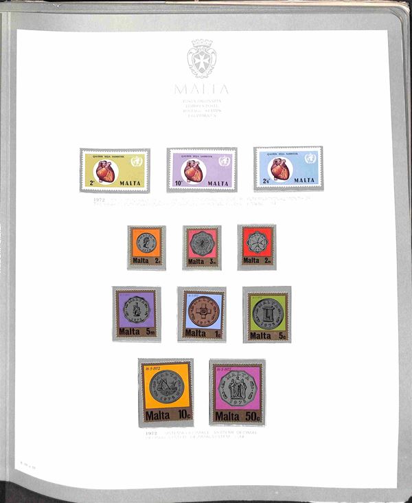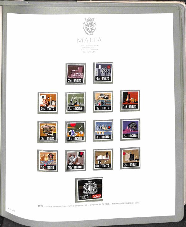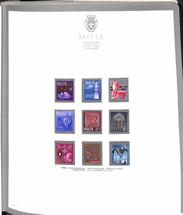 MALTA - 1964/1980 - Collezione completa (292/623) in album GBE con tutti i foglietti la Posta Aerea e i Segnatasse del periodo con ripetuta la Posta Ordinaria dal 1975 al 1980 (505/623) - merita esame