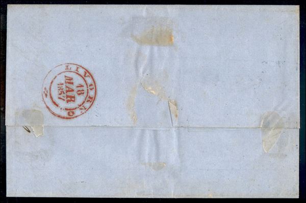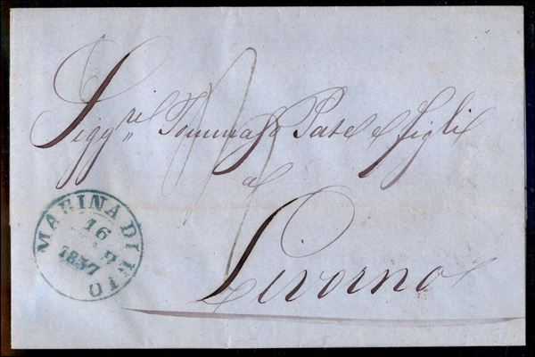 Marina di Rio (azzurro - non catalogato) - lettera per Livorno del 16.3.57 - tassata