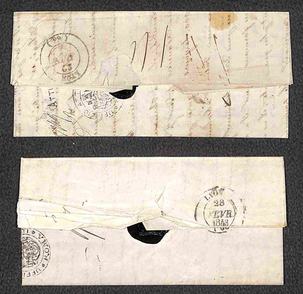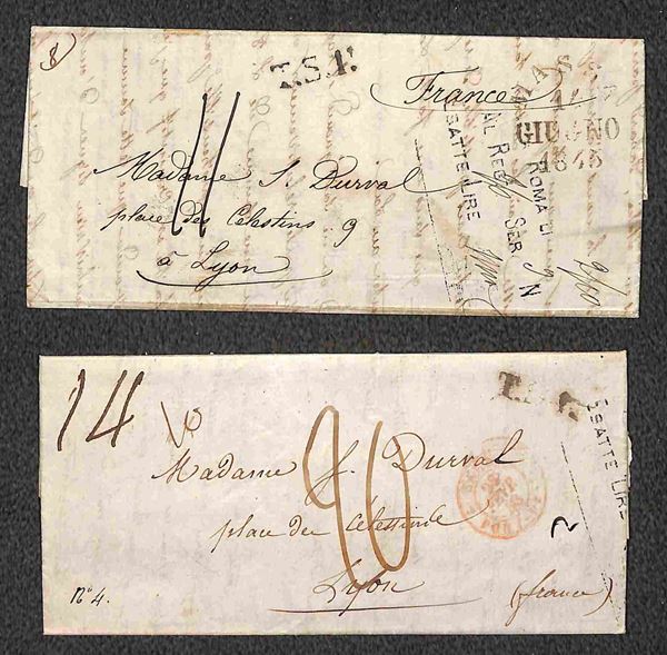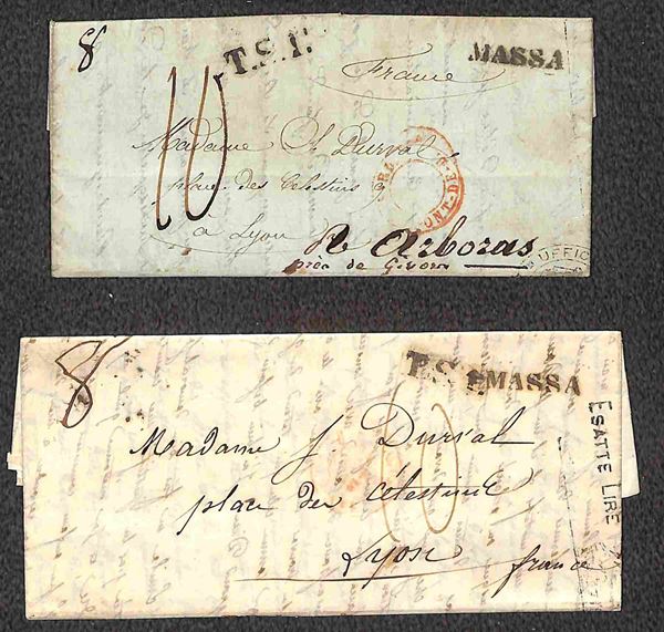 Massa + T.S. 1 - Quattro lettere da Monte Rotondo per Lione del 1843 - tassate
