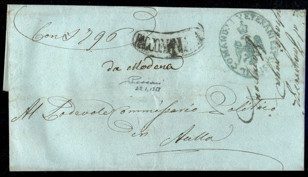Raccomandata (ovale) + Modena (a penna) - involucro di lettera con denaro per Aulla del 22.1.58 - Vaccari