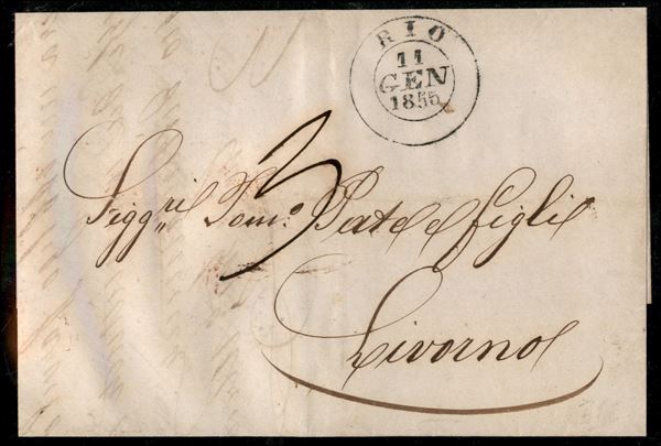 Rio (P.ti 13) - lettera per Livorno del 11.1.55 - tassata
