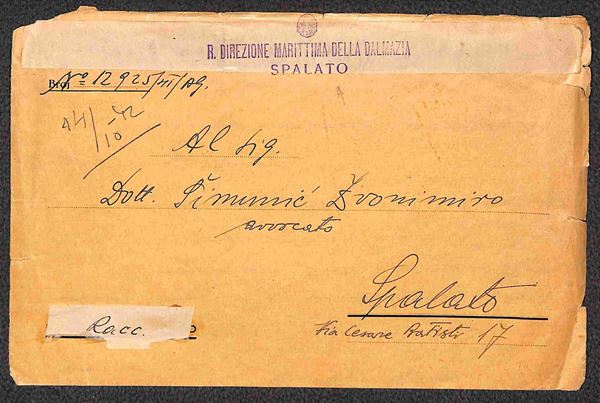 Spalato/R. Direzione Marittima della Dalmazia (in viola) - busta raccomandata in franchigia per cittą - 14.10.42 manoscritto a lapis