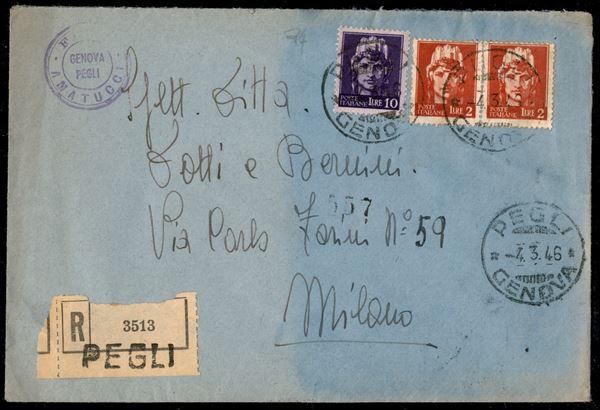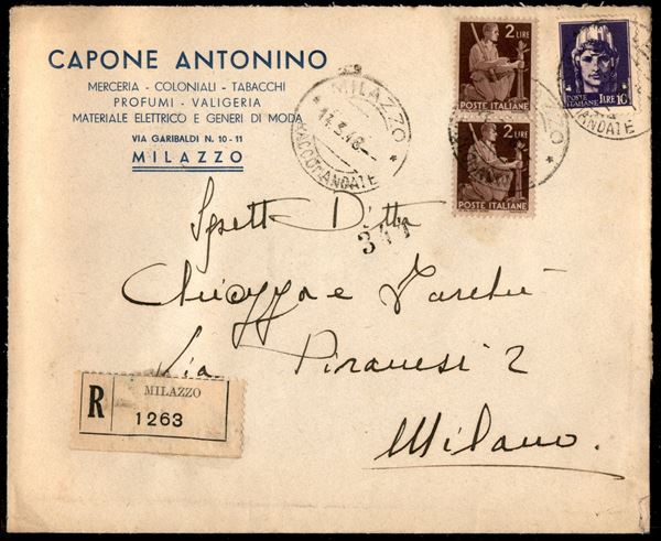 Tre raccomandate per cittą (una in tariffa) - una affrancata con 10 lire Imperiale + complementari e due con 10 lire imperiale senza fasci + complementari