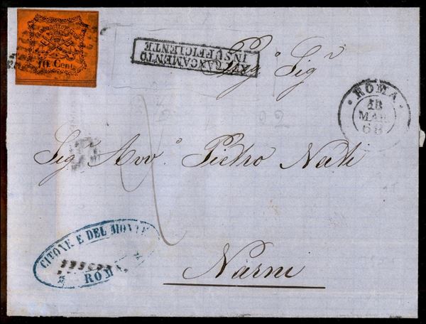 10 cent (17) isolato su lettera da Roma a Narni del 18.3.68 - tassata