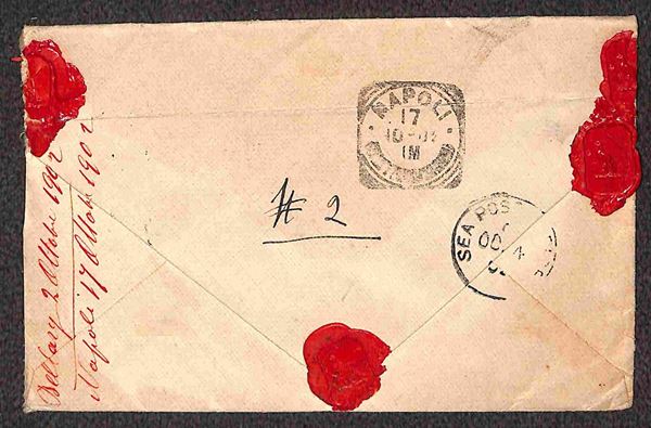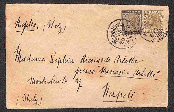 1,6 anna (34) + 6 anna (28) su busta da Bellary a Napoli del 2.10.02