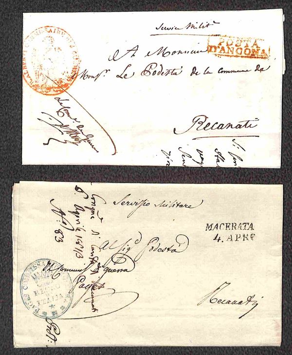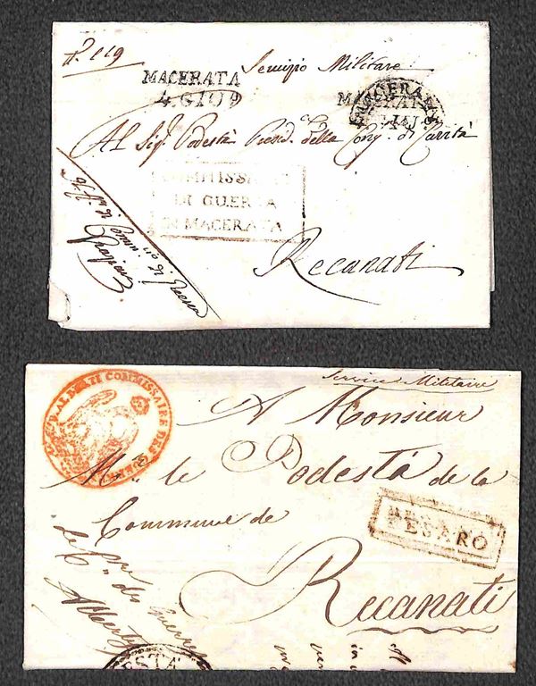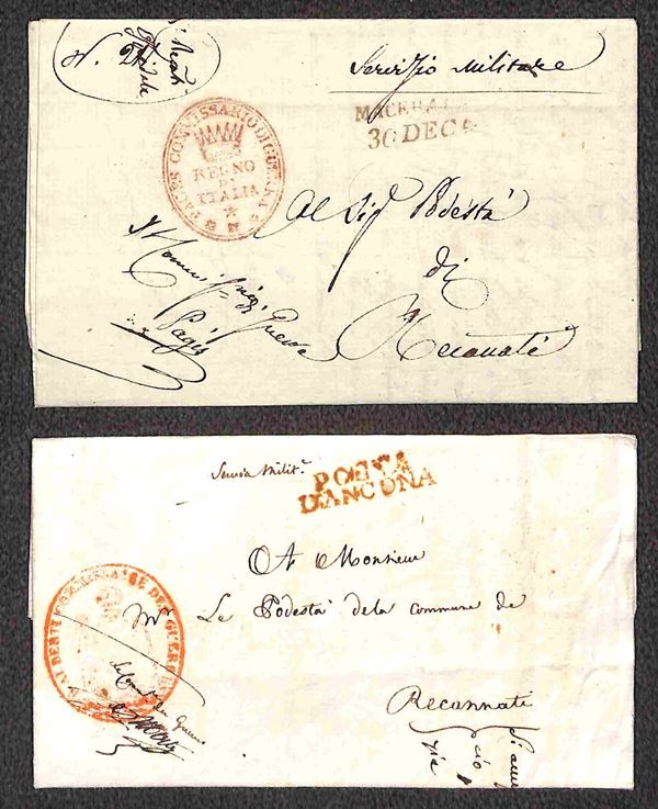 1803/1813 - Commissaires des Guerres - Otto lettere complete di testo del periodo da Forlė (1) a Pesaro (1) Macerata (1) Ancona (3)