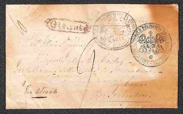 1832 (8/15 luglio) - intera lettera dal Consolato Generale Pontificio di Corfù a Senigallia via Napoli e Otranto - fumigata con tagli di disinfezione
