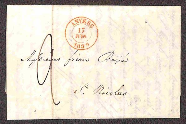 1836/1842 - Cinque prefilateliche del periodo - quattro da Anversa per S. Nicolaus (2) e Verviers (2) + una da Thielt
