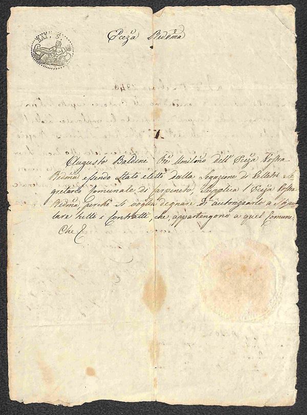 1840 (1 febbraio) - Carpineto - Carta bollata da 5 bai - Documento Notarile con sigillo a secco della Presidenza degli Archivi