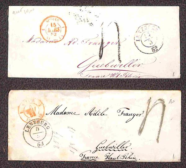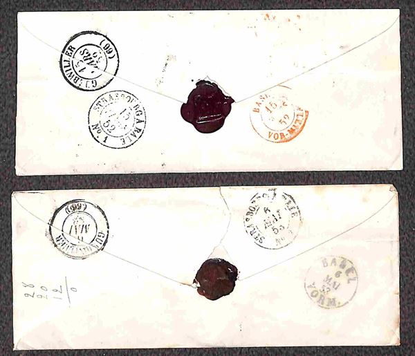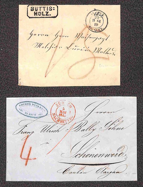 1849/1864 - Sette lettere del periodo non affrancate con tassa a carico